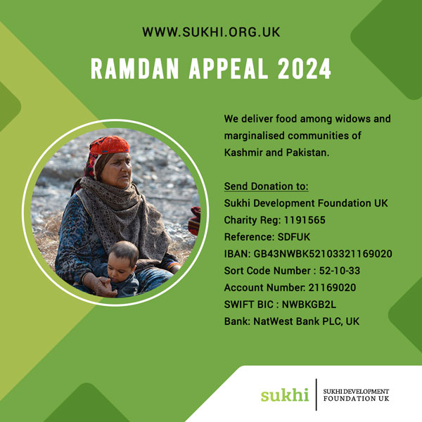 Sukhi Development Foundation UK (Sukhi) has been registered with Charity Commission for England and Wales having Charity Number 1191565. Sukhi is working for the uplift and betterment of the marginalized communities, especially widows, poor women, orphans, deprived students and the less privileged segments of the society in Pakistan-administered Kashmir. More specifically, Sukhi works with communities situated along the Line of Control (LoC) between India and Pakistan.